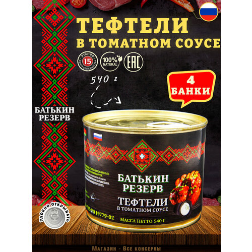 Тефтели с мясом и рисом в томатном соусе, Батькин резерв, 4 шт. по 540 г