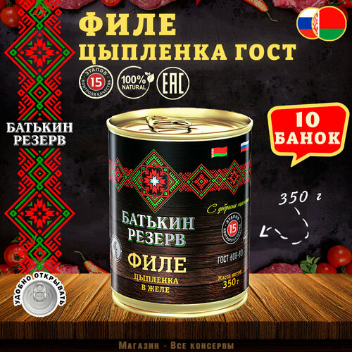 Цыпленок филе в желе, Батькин резерв, ГОСТ, 10 шт. по 350 г