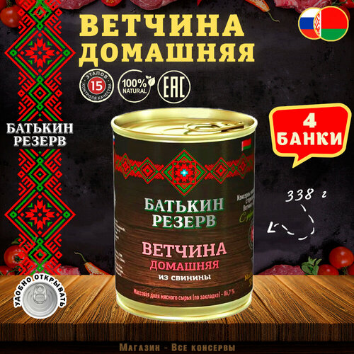 Ветчина домашняя из свинины, Батькин резерв, ТУ, 4 шт. по 338 г
