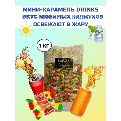 Мини-карамель Drinks Баян Сулу ассорти леденцовая c фруктовыми начинками 1 кг