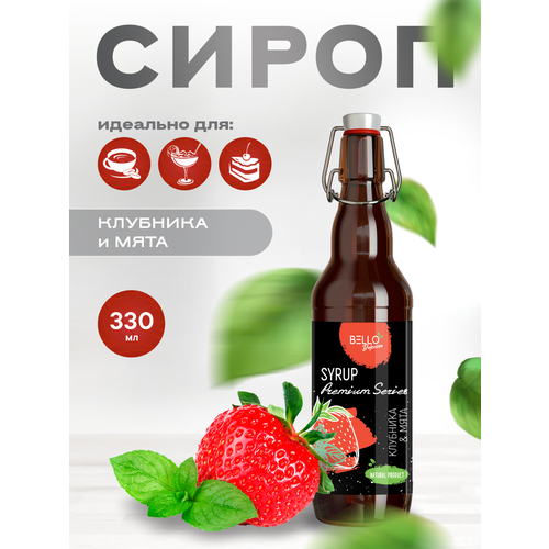 Сироп BELLO Dolcezza "Клубника-Мята", для коктейлей и десертов, 0,33 л