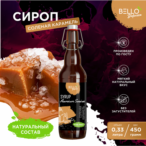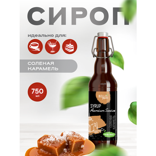 Сироп BELLO Dolcezza "Соленая карамель", для кофе, коктейлей, мороженого, 0,75 л