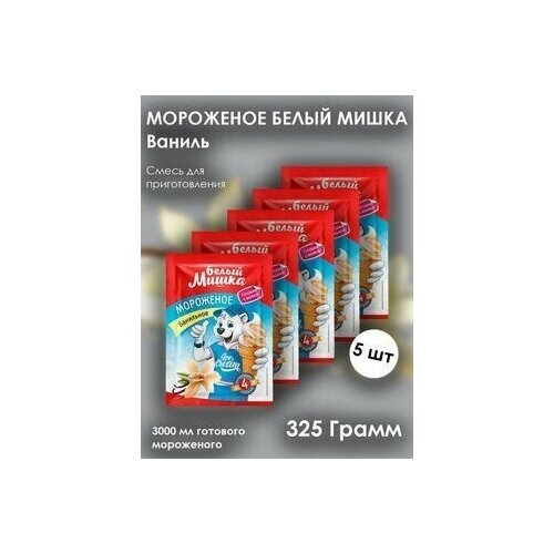 Смесь для приготовления Сухое мороженое Белый мишка ванильное 65 г х 5 штук