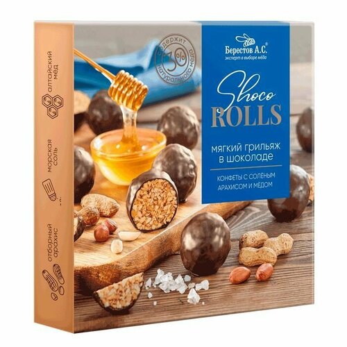Конфеты мягкий грильяж в шоколаде Shoco Rolls с арахисом, солью и мёдом, 135г