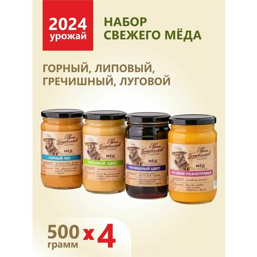 Набор меда ассорти 2 кг. Натуральный мед Липовый, Гречишный, Горный, Луговой. сбор 2024 года