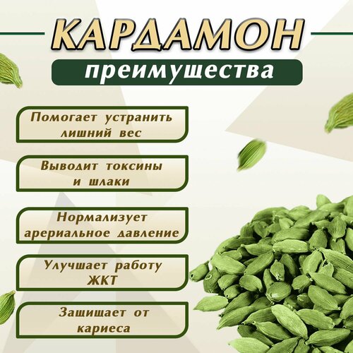 Кардамон Зеленый целый крупные зерна Индия 100 гр, специя для кофе, чая, приправа для плова, мяса, рыбы, полезно для сердца