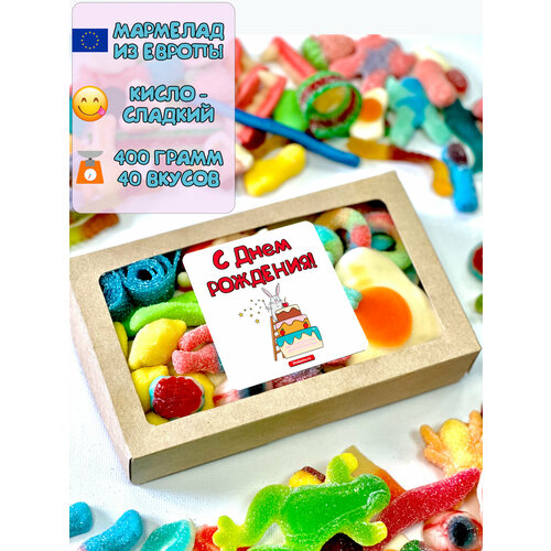 Кислый сладкий жевательный мармелад "С днем Рождения" 400 г