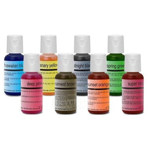 Краски сияющие набор Airbrush Chefmaster, 8 цветов по 20 гр.