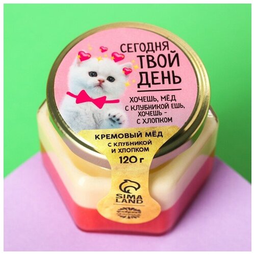 Кремовый мёд «Сегодня твой день» с клубникой и хлопком, 120 г.