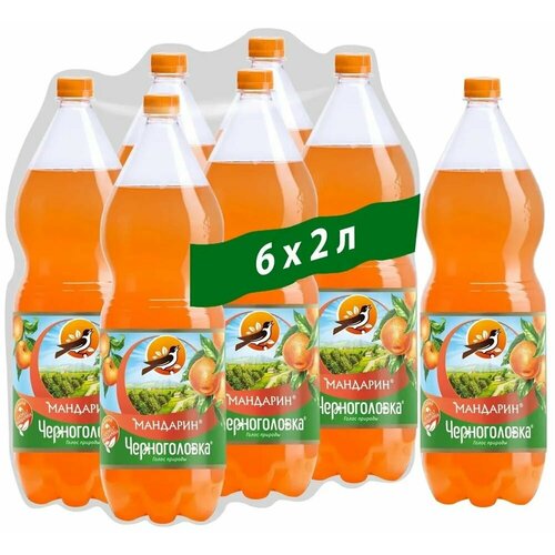 Лимонад Черноголовка Мандарин, газированный, 6 шт по 2 л