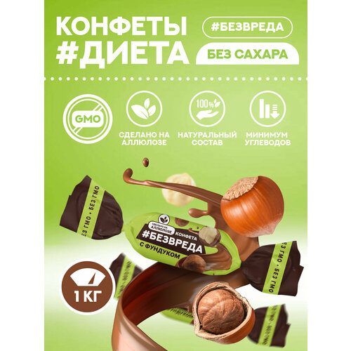 Конфеты шоколадные с фундуком "безвреда" 1 кг / Шоколадные конфеты без сахара