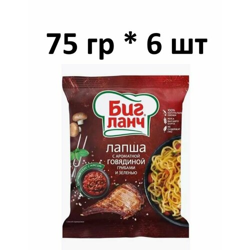 Лапша быстрого приготовления Биг Ланч с ароматом говядины, грибами и зеленью 75 гр — 6 шт