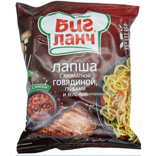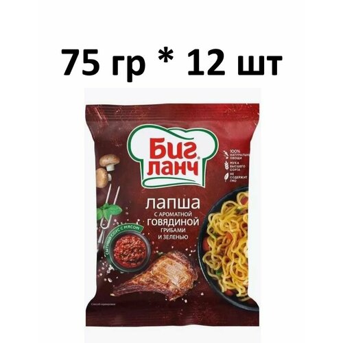 Лапша быстрого приготовления Биг Ланч с ароматом говядины, грибами и зеленью 75 гр — 12 шт