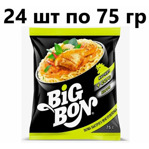 Лапша BIGBON Курица + соус Карри 75 гр — 24 штуки