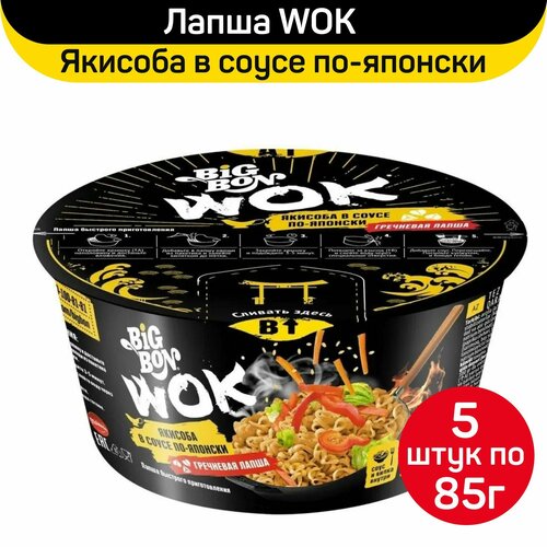 Лапша BigBon Wok Якисоба в соусе по-японски, 5 шт по 85 г