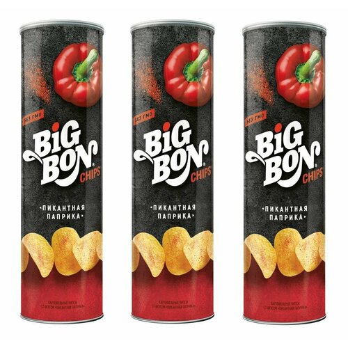 Чипсы картофельные Бигбон BIGBON со вкусом пикантная паприка 130 гр тубус Big Bon 3 штуки