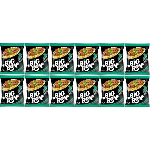 Лапша быстрого приготовления BIG BON говяжья + соус гуляш 75 г — 12 штук