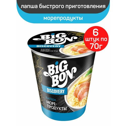 Лапша быстрого приготовления BIGBON Discovery со вкусом морепродуктов, 6 шт по 70 г