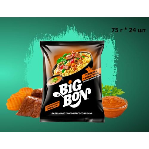 Лапша быстрого приготовления BIG BON говяжья + соус гуляш 75 г — 24 штуки
