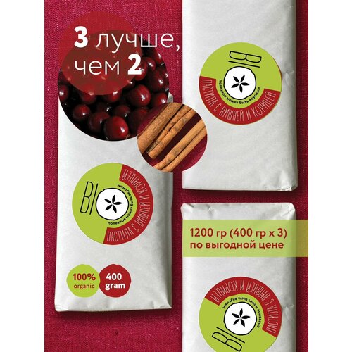 Пастила яблочная с вишней и корицей без сахара BIO-яблоко, белевская натуральная 1200 гр