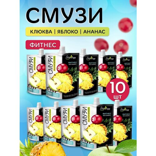 Смузи Фитнес клюква, ананас, яблоко, семена чиа, пребиотик BioNergy(в наборе 10шт по 120г)