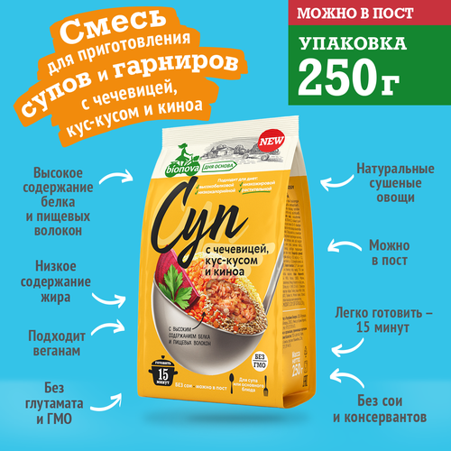 Смесь «С чечевицей, кус-кусом и киноа» для приготовления супов, гарниров или основных блюд