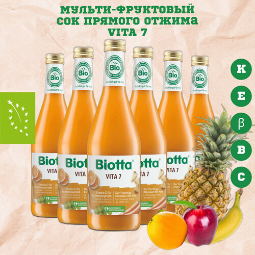 Сок прямого отжима Biotta Vita 7, BIO (БИО) без сахара, коктейль из 7 овощей и фруктов (фруктово-овощной) органический, Швейцария, 0.5 л x 6 шт.