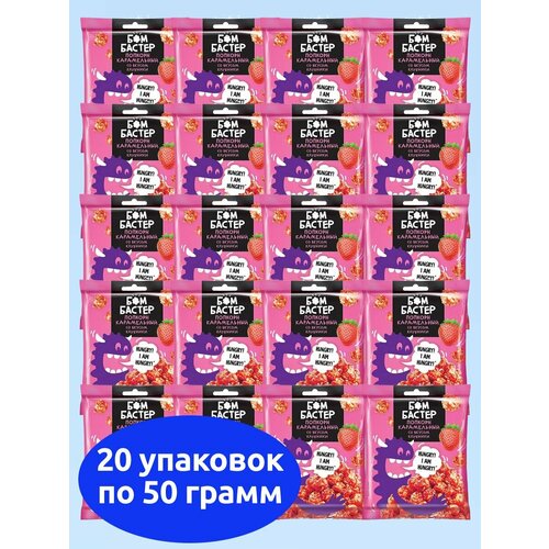 Бомбастер, попкорн карамельный со вкусом клубники, KDV, 20 пачек по 50 г