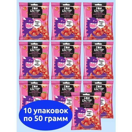 Бомбастер, попкорн карамельный со вкусом клубники, KDV, 10 пачек по 50 г