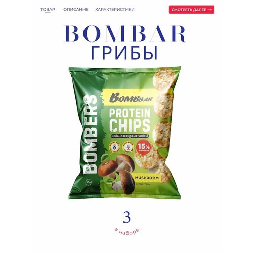 Чипсы протеиновые "BOMBBAR" цельнозерновые со вкусом "Грибы" 3*50 гр