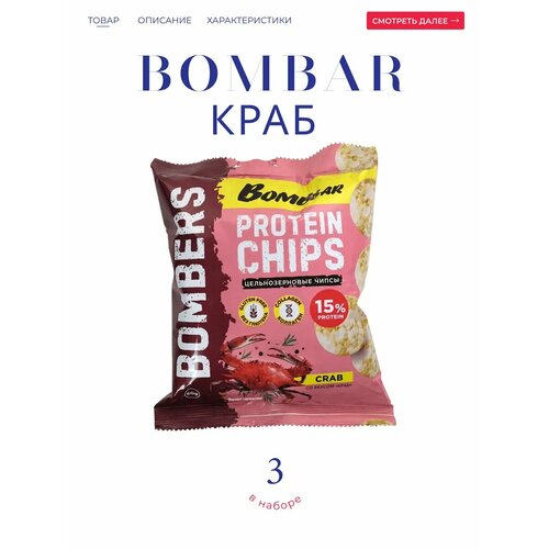 Чипсы протеиновые "BOMBBAR" цельнозерновые со вкусом "Краб" 3*50 гр