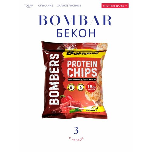 Чипсы протеиновые "BOMBBAR" цельнозерновые со вкусом "Бекон с паприкой" 3*50 гр
