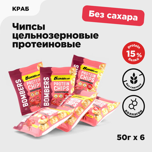 Чипсы протеиновые цельнозерновые BOMBBAR со вкусом "Краб", 6шт х 50г