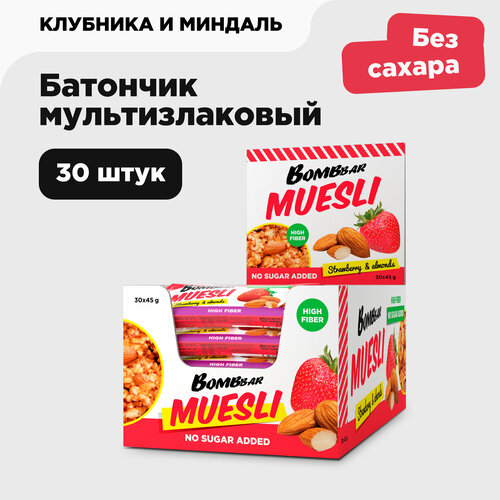 Мюсли-батончики Bombbar (45гр), Мультизлаковый Клубника, 14 шт