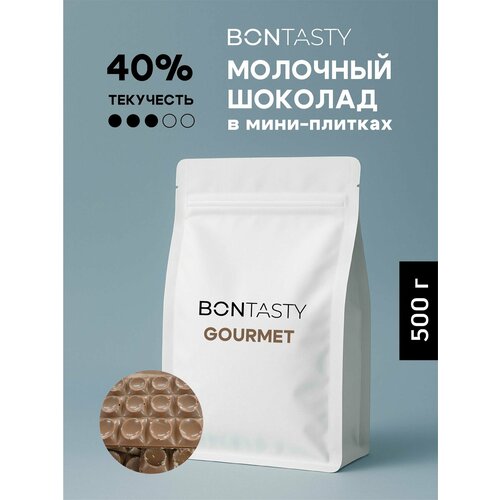 Шоколад молочный кондитерский BON TASTY "Gourmet", без добавок, 40%, 500г, в флоу-паке