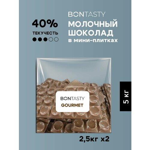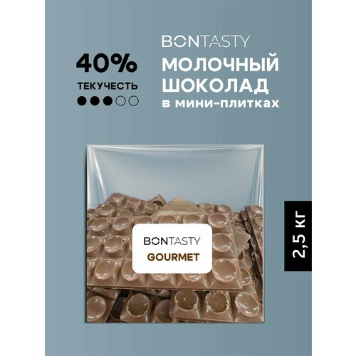 Шоколад молочный кондитерский BON TASTY "Gourmet", без добавок, 40%, 2,5 кг