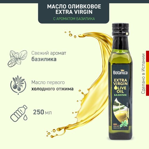 Масло оливковое нерафинированное Extra Virgin с ароматом базилика Botanica, 250мл