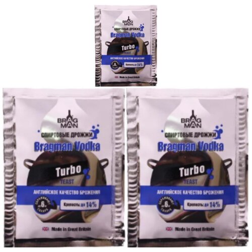 Спиртовые турбо дрожжи Bragman Vodka, 3х66 гр (Спиртовые турбо дрожжи Брагман Водка, 3 штуки в комплекте)