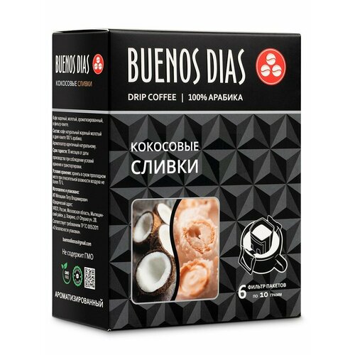 Дрип кофе Buenos Dias Кокосовые сливки 6шт*10гр Кофе молотый ароматизированный в дрип пакетах
