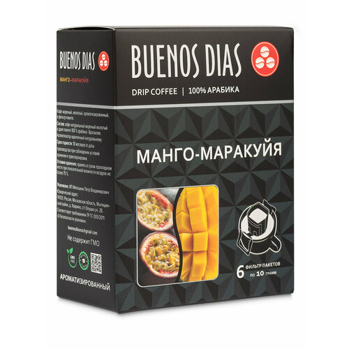 Дрип кофе Buenos Dias Манго Маракуйя 6шт*10гр Кофе молотый ароматизированный в дрип пакетах