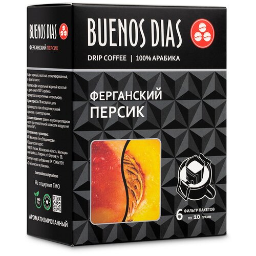 Дрип кофе Buenos Dias Ферганский персик 6шт*10гр Кофе молотый ароматизированный в дрип пакетах