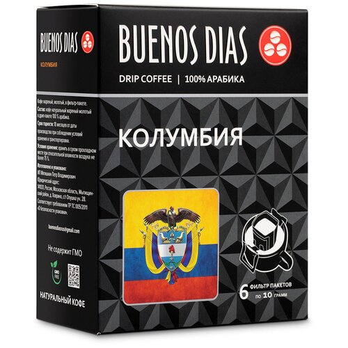 Дрип кофе Buenos Dias Колумбия 6шт*10гр Кофе молотый в дрип пакетах