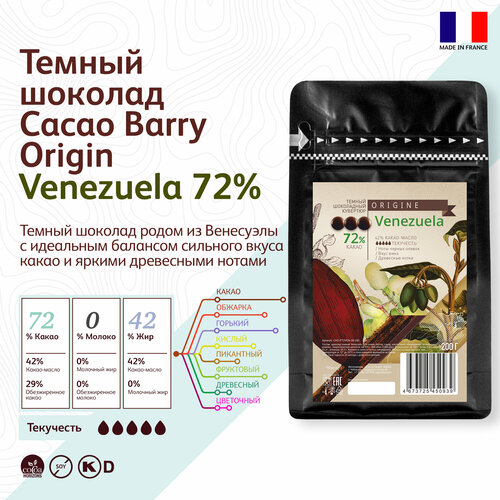 Темный шоколад кондитерский Origine Cacao Barry Venezuela 72%, 0,2 кг