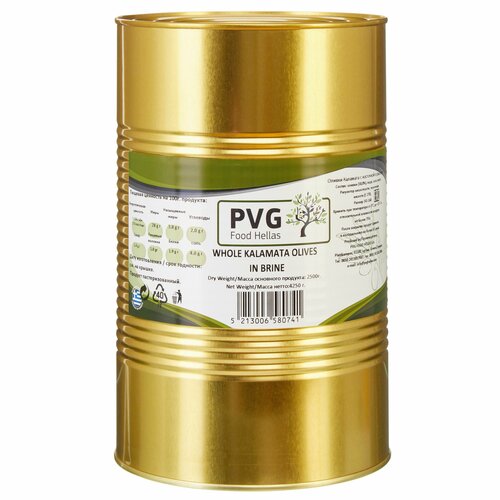 Оливки каламата с косточкой 140-160, 4300 мл, CALYPSO, PVG FOOD HELLAS, ж/б