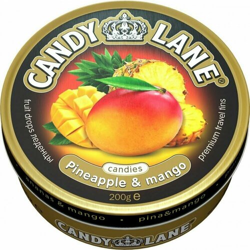 Фруктовые леденцы монпансье CANDY LANE в жестяной банке, ананас и манго 200г