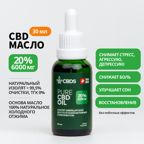 Масло CBD 20% 6000 мг 30 мл. Каннабидиол. CBDS (конопляное масла)