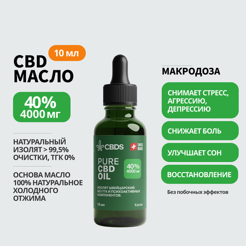 Масло CBD 40% c МСТ маслом, 4000 мг, 10 мл. Каннабидиол. Макродоза Антистресс