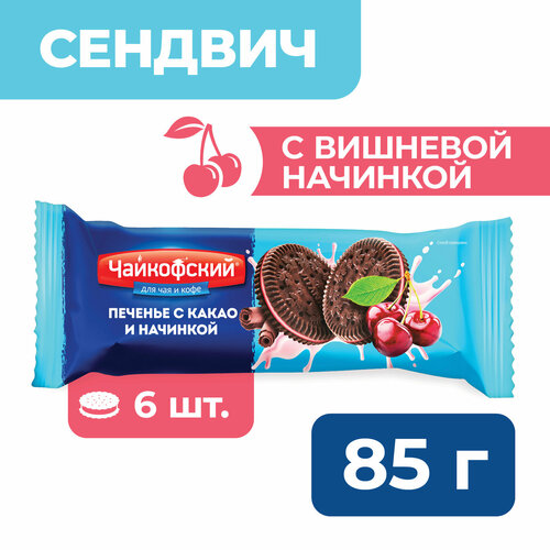 Печенье с какао и вишневой начинкой Чайкофский, хрустящее, 85 г.