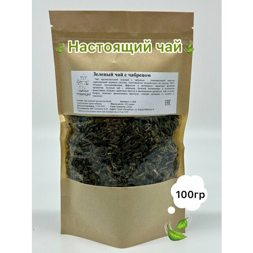 Зеленый Чай с Чабрецом, 100 г. Китайский Листовой чай с Ароматом Чабреца
