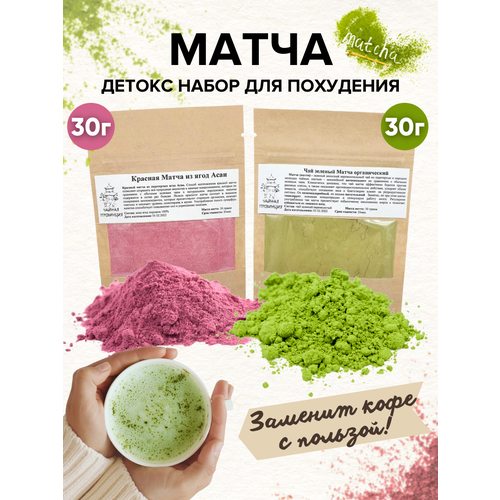 Набор детокс чая Матча, 60 г / Зеленый чай матча и красный матча из ягоды асаи для похудения